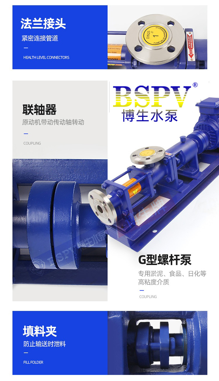 博生牌G型單螺桿泵制造標準分為食品級、化工級、日用品型、特種型等四大系列,產(chǎn)品的核心部件和密封裝置,根據(jù)介質(zhì)的不同特性,采用不同的材質(zhì)和不同的密封形式,以滿足各種物料的需要。