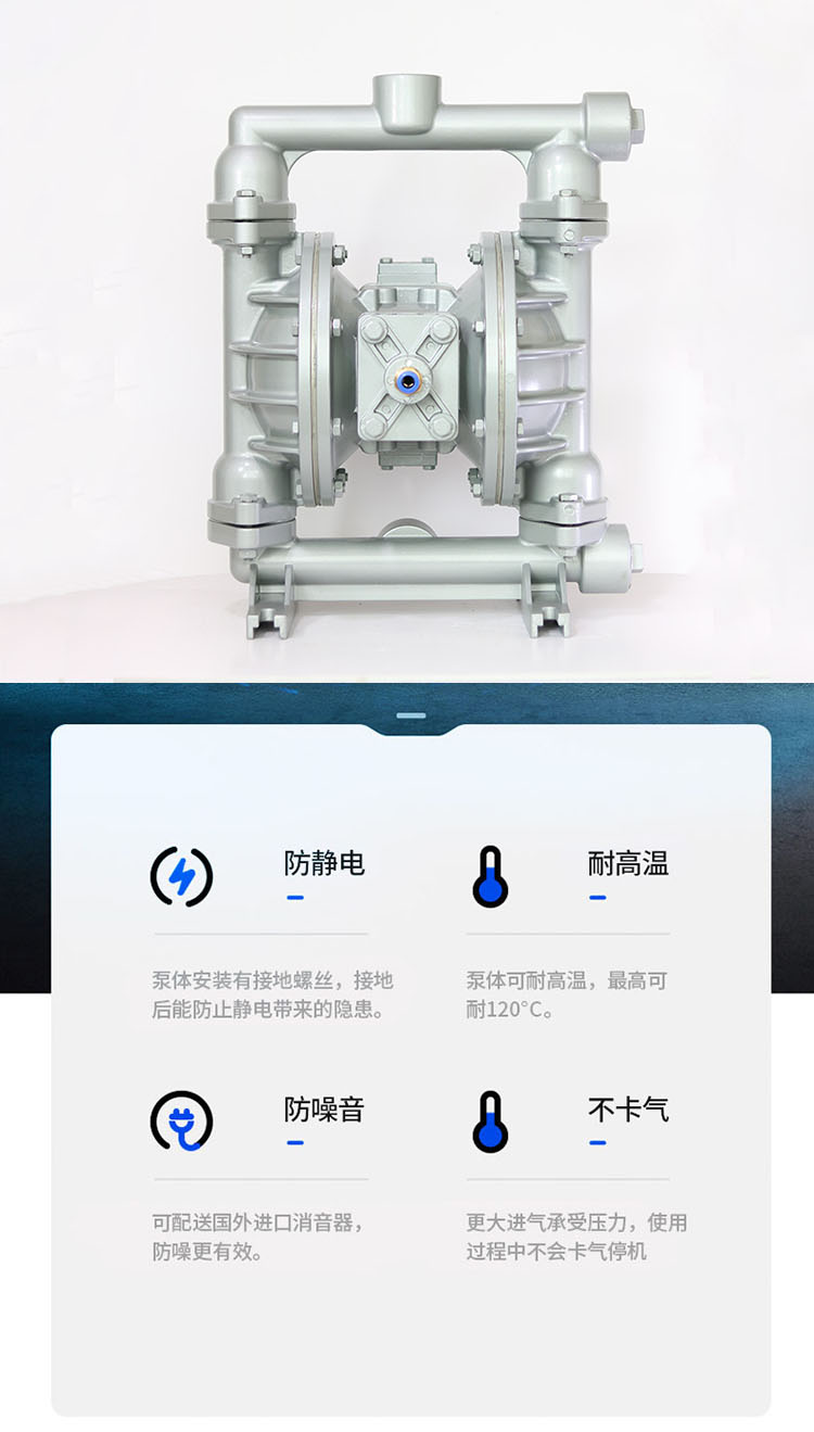 上海博生水泵QBY5-40L型鋁合金氣動隔膜泵,油墨泵,耐腐蝕氣動隔膜泵,污水排污氣動隔膜泵系列第五代氣動隔膜泵是一種新型輸送機械,采用壓縮空氣為動力源,對于各種腐蝕性液體,帶顆粒的液體,高粘度、易揮發、易燃、劇毒的液體,均能予以抽光吸盡。其性能參數與聯邦德國的WLLDENPVMPS、美國的MARlOWPUMPS相近。