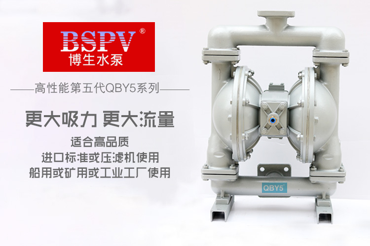 上海博生熱銷第五代上海博生水泵QBY5-50L型鋁合金氣動隔膜泵,船用隔膜泵,污水氣動隔膜泵,耐腐蝕氣動隔膜泵,進(jìn)口隔膜泵如用戶有特殊要求。上海博生水泵QBY5-50L型鋁合金氣動隔膜泵,船用隔膜泵,污水氣動隔膜泵,耐腐蝕氣動隔膜泵,工業(yè)化工隔膜泵,污泥泵隔膜泵聯(lián)系博生客服以方便用戶選型,正確使用氣動隔膜泵。第五代全新系列QBY5型氣動隔膜泵永不卡機(jī),無油氣動隔膜泵,高吸程高流量隔膜泵。