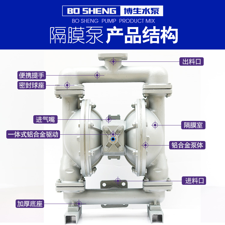 隔膜泵材質(zhì):不銹鋼,鑄鐵,鋁合金,工程塑料PP。QBY5-50L型鋁合金氣動隔膜泵,船用隔膜泵,污水氣動隔膜泵